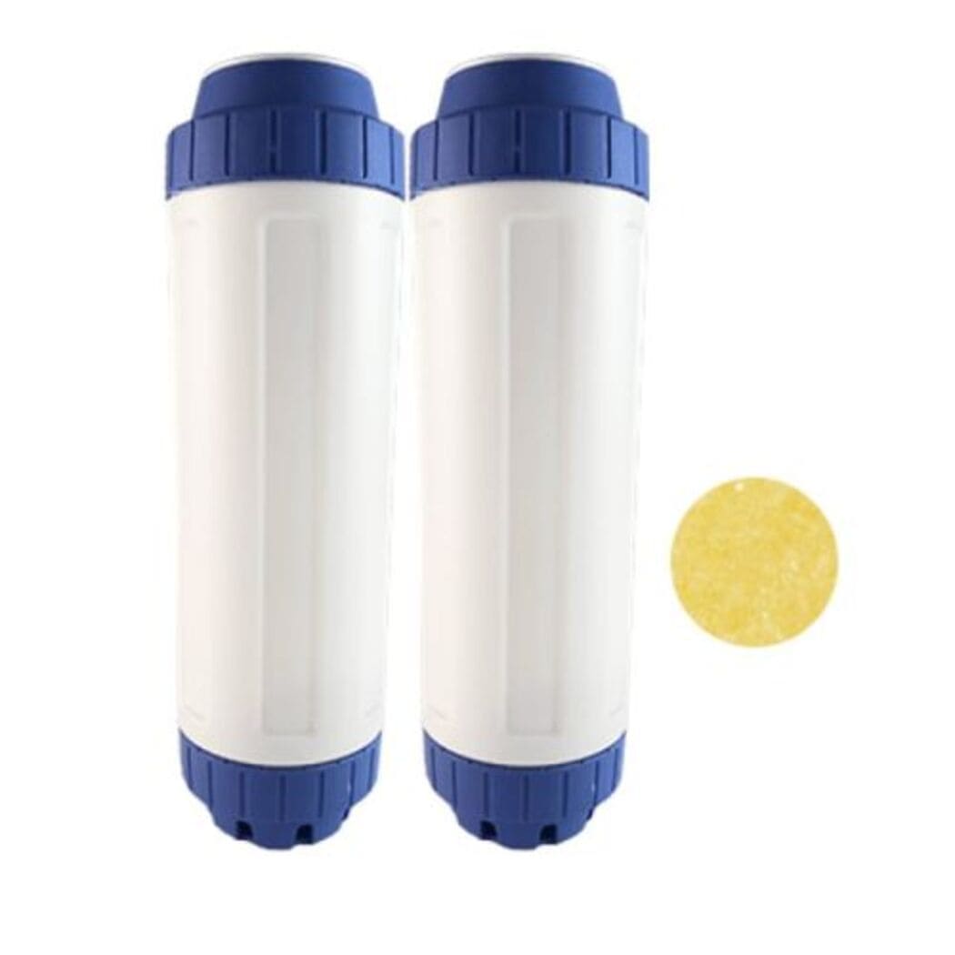 Replacement 2.5" x 10" Limescale De-Alk Filter Dual Pack. Fits standard 2.5 x 10 inch housing and is for the reduction of limescale and heavy metals.