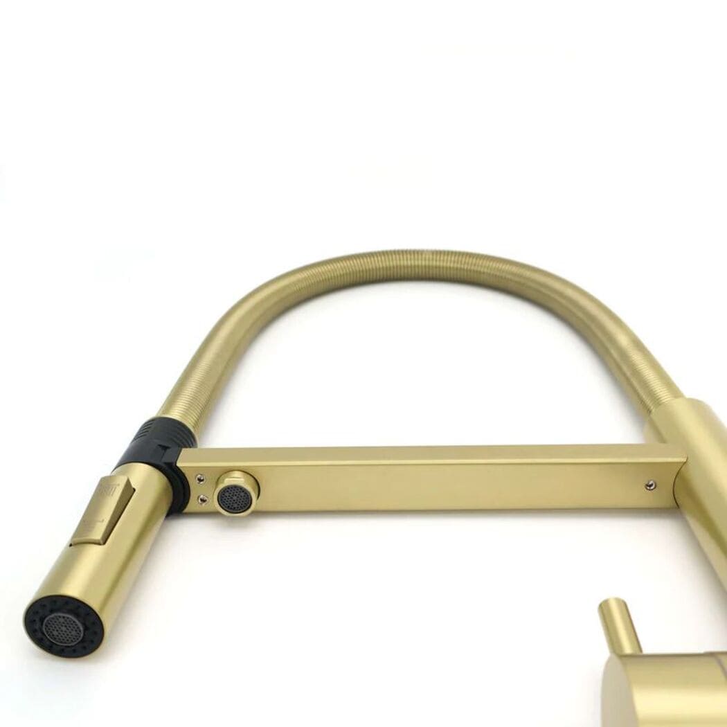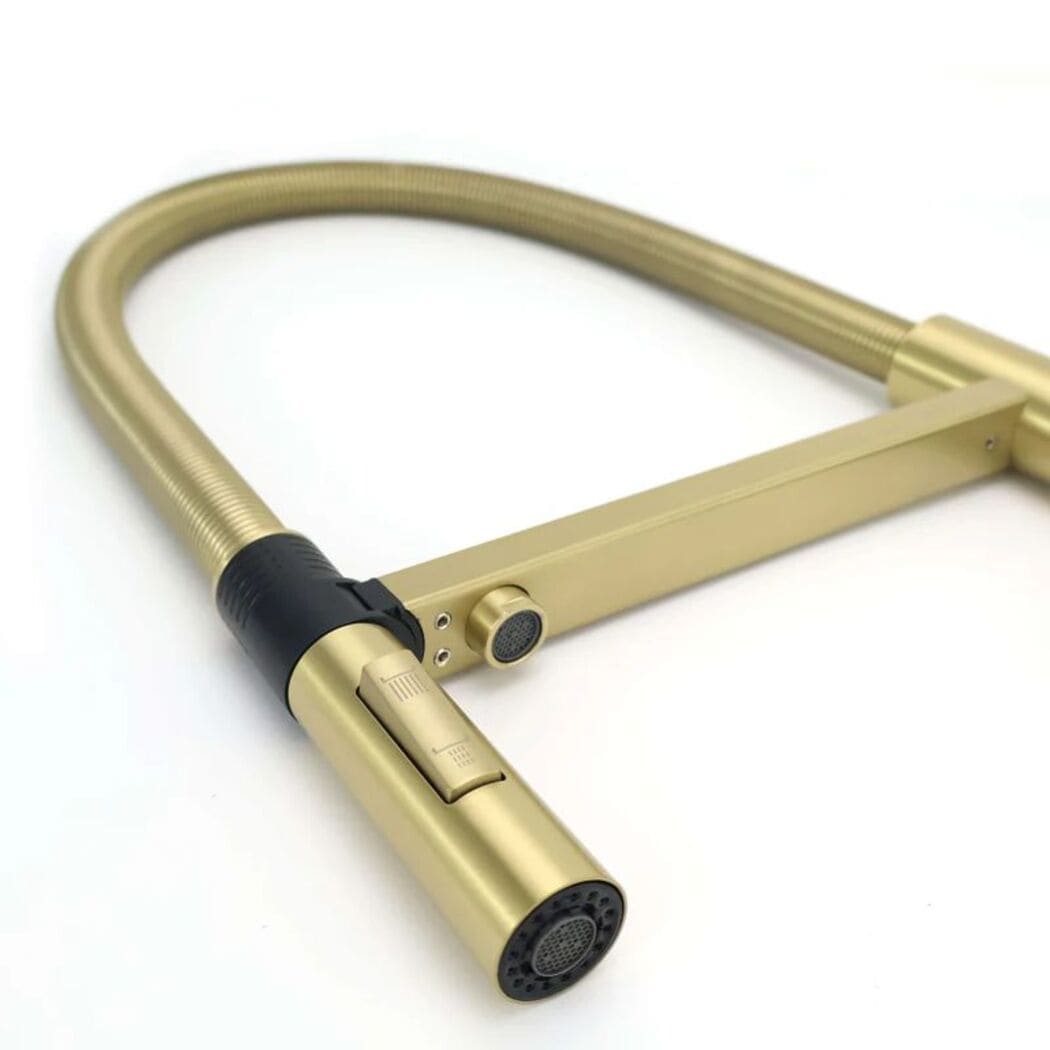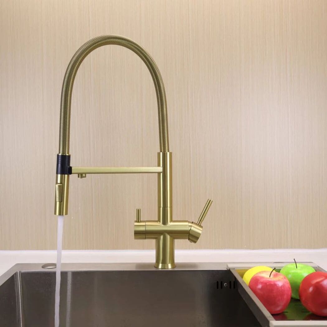 The Riva Brushed Brass, a masterpiece of luxury and innovation, exquisitely designed and meticulously crafted. This pull-out three-way mixer tap redefines elegance, seamlessly blending modern aesthetics with unparalleled functionality. Experience the convenience of dispensing hot, cold, and purified water from a single tap. Elevate your kitchen's opulence with the brushed brass pull-out double-lever 3-way mixer tap, an impeccable choice for those seeking the epitome of sophistication.