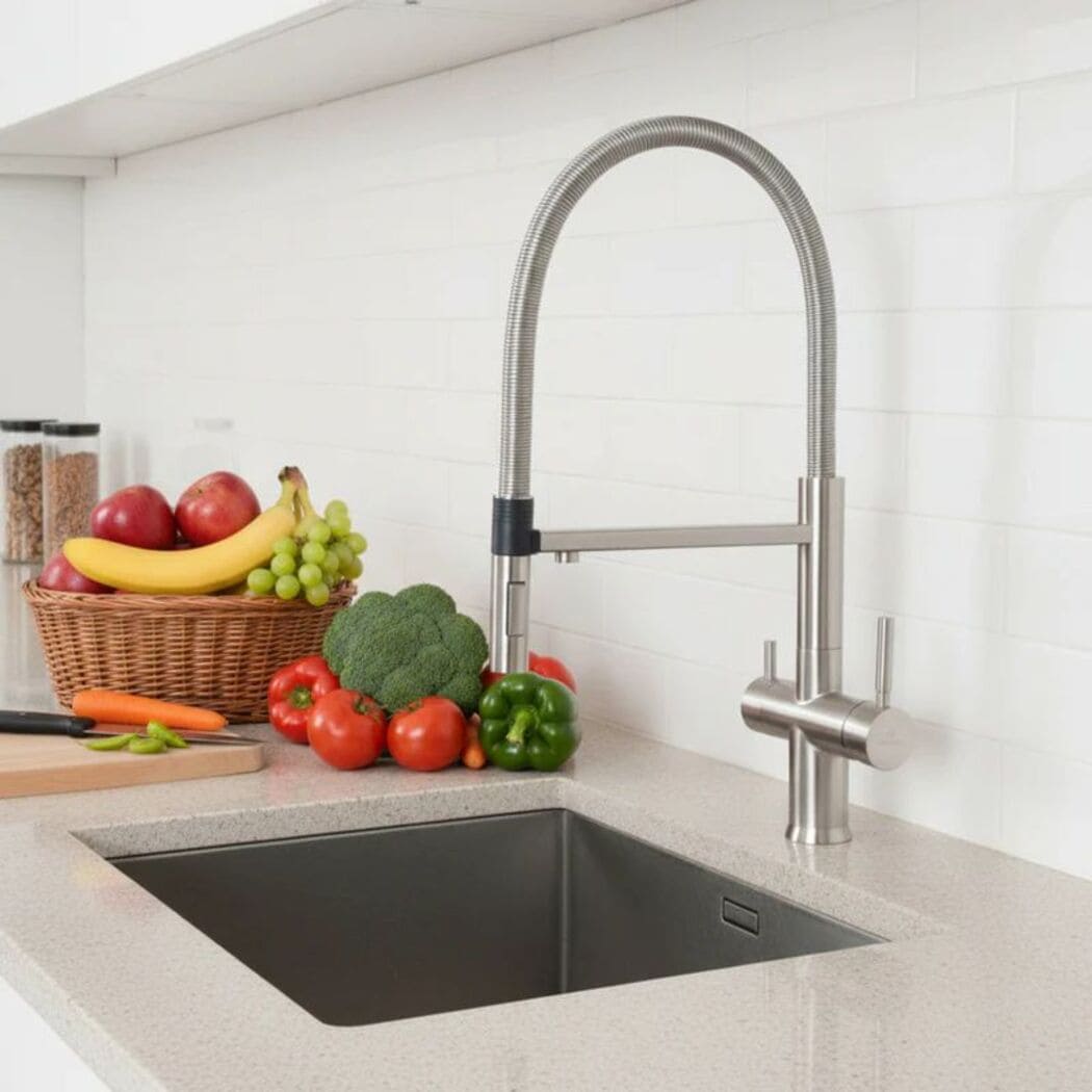 Generations have witnessed traditional kitchen taps follow a consistent pattern. However, the Riva presents a paradigm shift. This luxury and modern 3-way kitchen tap seamlessly delivers hot, cold, and filtered water from a single source. In addition to this distinctive feature, the Riva 3-Way tap obviates the necessity for a supplementary tap dedicated solely to filtered water, ushering in an era of sink space minimalism while preserving the kitchen's authentic allure.